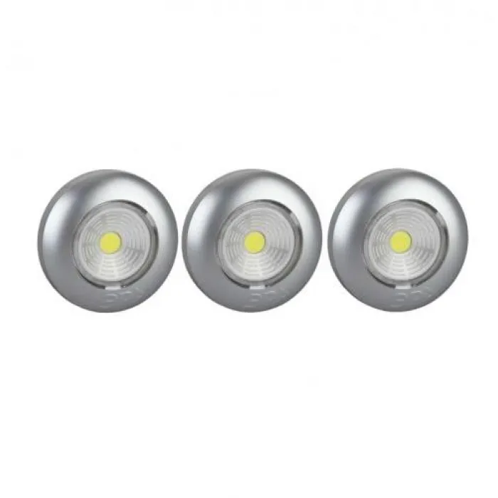SB-504 Фонарь ЭРА NEW пушлайт "Аврора" [COB, 3xAAA, серебристый, 3шт в кор] Светодиодный самоклеящийся фонарь-подсветка:COB диод нового поколения