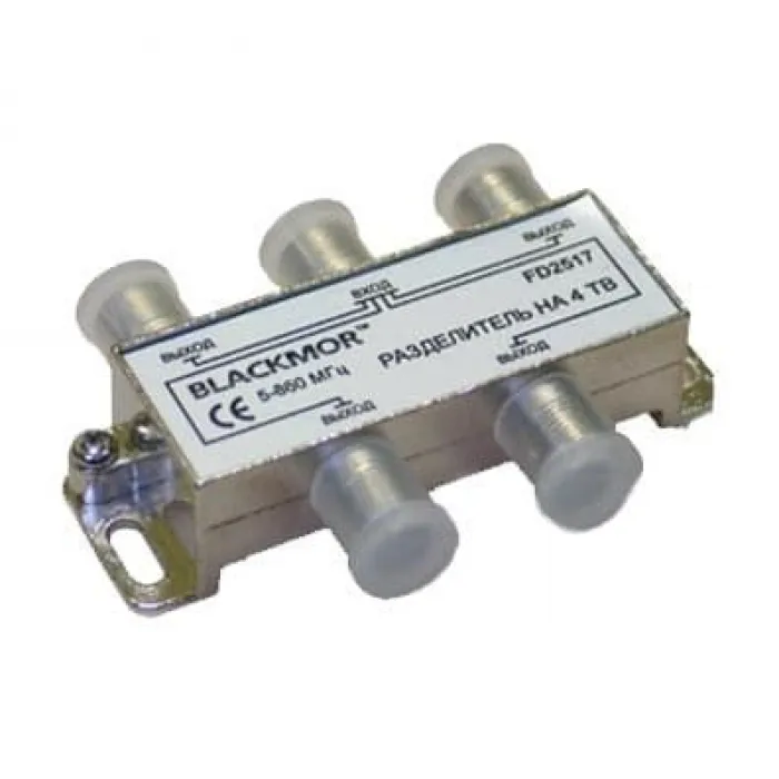 Антенный разветвитель, разветвитель телевизионного сигнала на 4 выхода, на входе и выходе имеет разъемы типа F, обеспечивающие простоту и герметичность соединения, не требуют пайки. Антенный разветвитель (антенный краб) пропорционально делит входящий сигнал между выходами. Применяется для разветвления антенного сигнала как внутри помещений так и для установки на улице.