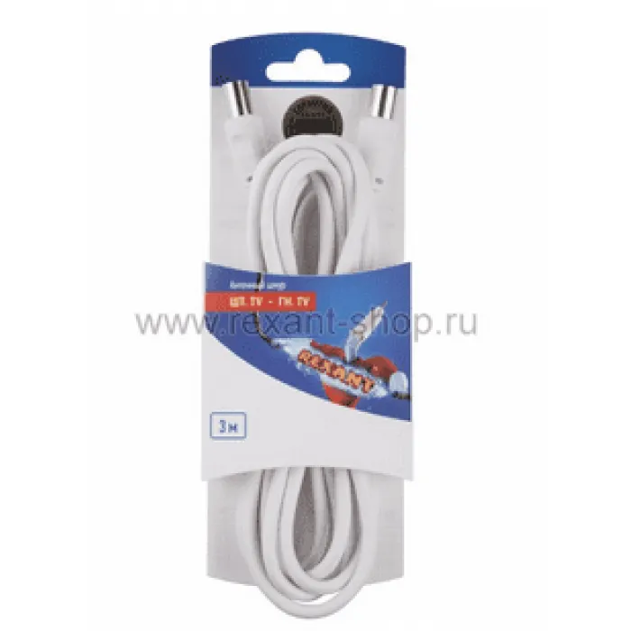 Шнур шт. TV - гнездо TV 3М, белый REXANT, Нижний Новгород