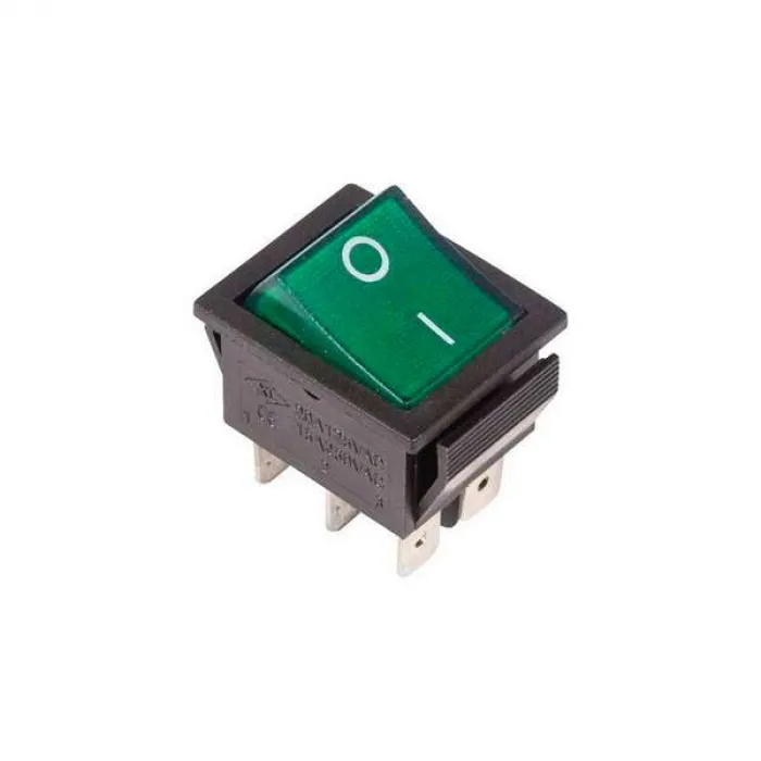 Выключатель клавишный 250V 15А (6с) ON-ON зеленый с подсветкой REXANT - это качественный и надежный выключатель, который предназначен для управления электрическими устройствами. Он имеет два положения ON и OFF, что позволяет легко и удобно включать и выключать подключенные устройства. Зеленая подсветка делает его легко различимым и удобным в использовании даже в темное время суток. Продукт изготовлен из прочных материалов и обладает высокой степенью защиты от перегрузок и короткого замыкания. Выключатель клавишный REXANT идеально подойдет для использования в доме, офисе или на производстве.