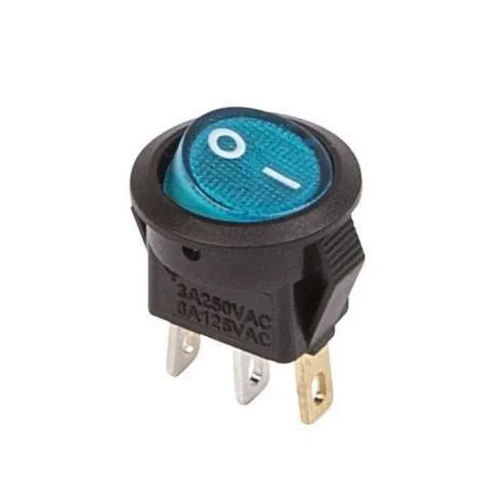 Выключатель клавишный круглый 250V 3А (3с) ON-OFF синий с подсветкой Micro REXANT, Нижний Новгород
