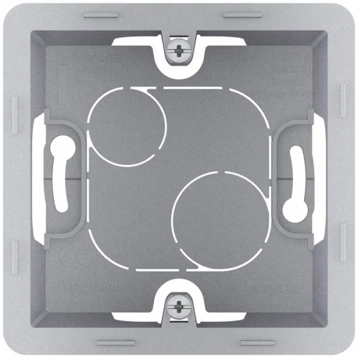 Коробка накладного монтажа - 1 пост - INSPIRIA - алюминийКоробка накладного монтажа INSPIRIA предназначена для установки на стену или потолок и обеспечивает удобное и надежное размещение одного поста электрических выключателей, розеток или других устройств. Изготовлена из высококачественного алюминия, что обеспечивает прочность и долговечность конструкции.