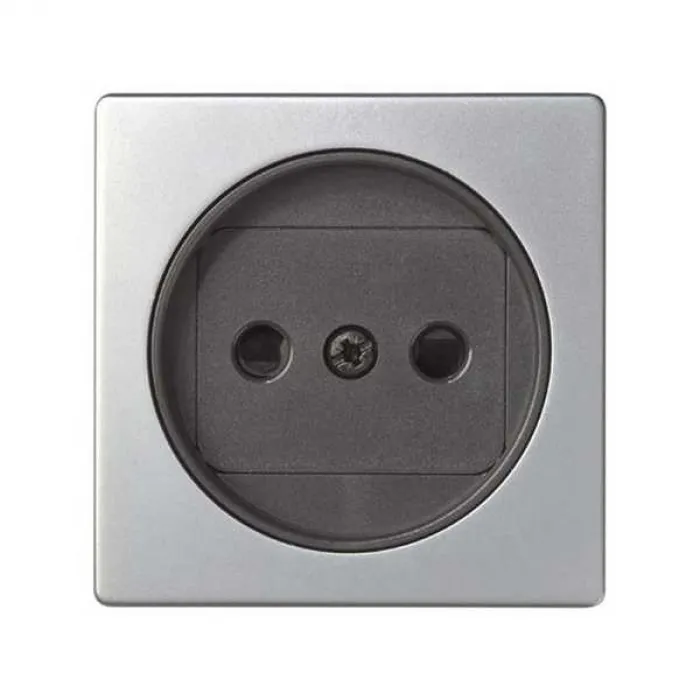 Накладка на розетку двухполюсную 2П без заземления с защитными шторками Simon 82, алюминий+графит - идеальный выбор для тех, кто ценит комфорт, стиль и безопасность.