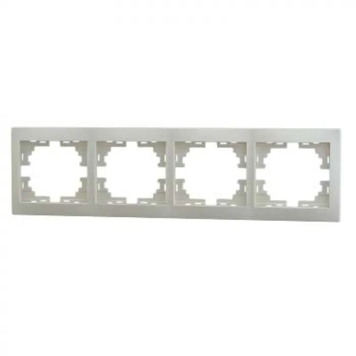 Рамка четверная горизонтальная. Особенности заключаются в европейском дизайне. в повышенной безопасности негорючего поликарбонатного ПК-пластика. в более прочном и устойчивом к механическому воздействию покрытии. в простом монтаже и демонтаже.Напряжени
