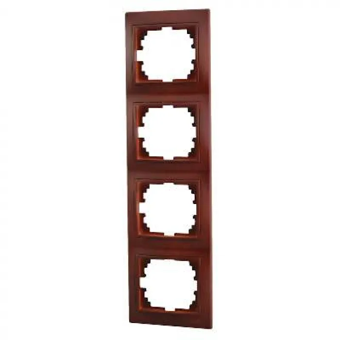 Рамка четверная вертикальная. Особенности заключаются в европейском дизайне. в повышенной безопасности негорючего поликарбонатного ПК-пластика. в более прочном и устойчивом к механическому воздействию покрытии. в простом монтаже и демонтаже.Цвет: вишня