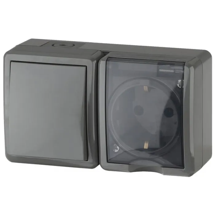 Блок розетка+выключатель IP54, 16АХ(10AX)-250В, ОУ, Эра Эксперт, серыйМатериал контактной группы