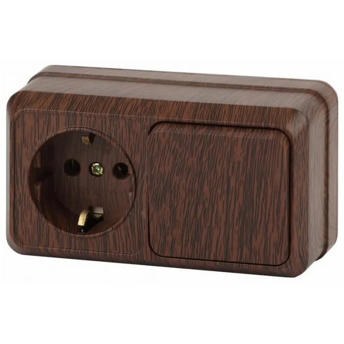 Блок розетка+ выключатель горизонтальный ЭРА Intro Quadro Венге, Б0036151, Нижний Новгород