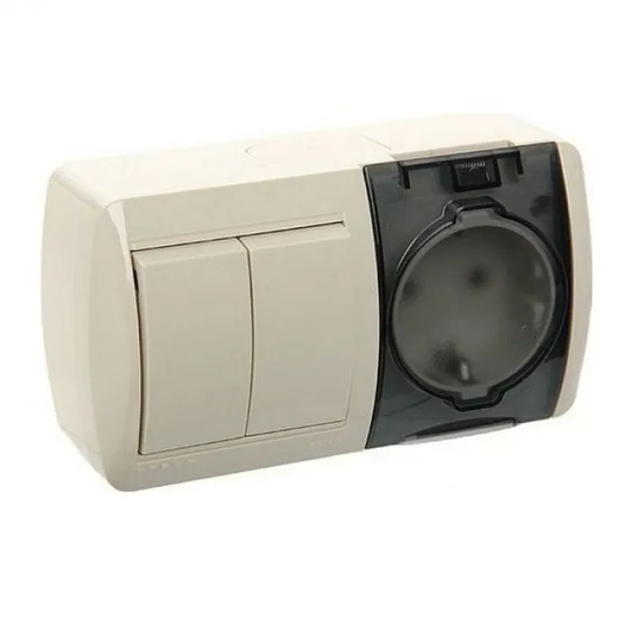 Блок комбинированный Lezard Nata выключатель 2-клавишный и розетка с заземляющими контактами с крышкой, кремовый горизонтальный 710-0300-171, Нижний Новгород