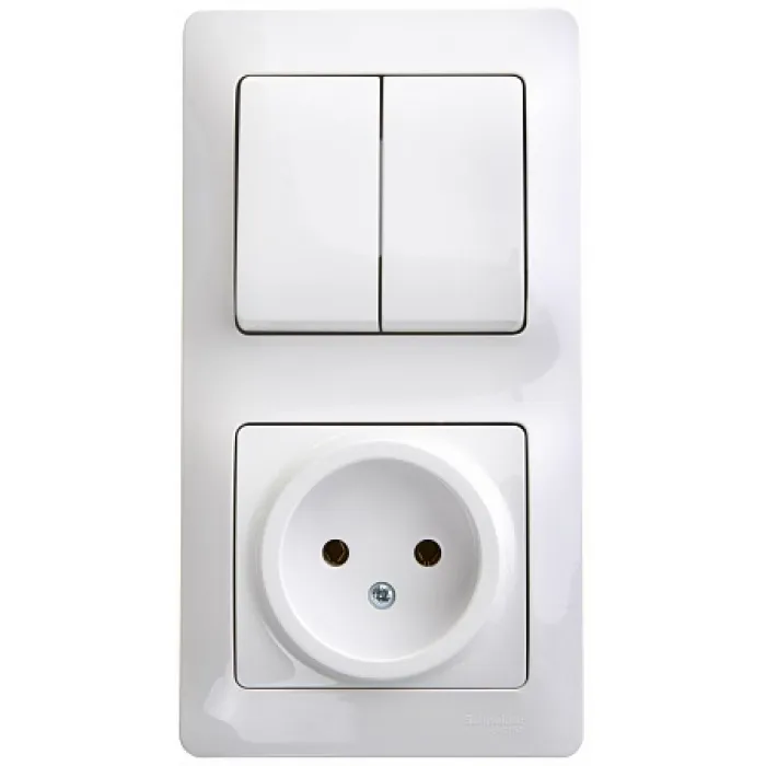 В нашем магазине Главэлектрика в Нижнем Новгороде, вы можете приобрести с доставкой по Нижнему Новгороду товар Блок: выключатель 2-клавишный и розетка Schneider Electric GLOSSA, скрытый монтаж, белый, GSL000172.