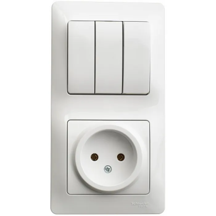 В нашем магазине Главэлектрика в Нижнем Новгороде, вы можете приобрести с доставкой по Нижнему Новгороду товар Блок: выключатель 3-клавишный и розетка Schneider Electric GLOSSA, скрытый монтаж, белый, GSL000176.
