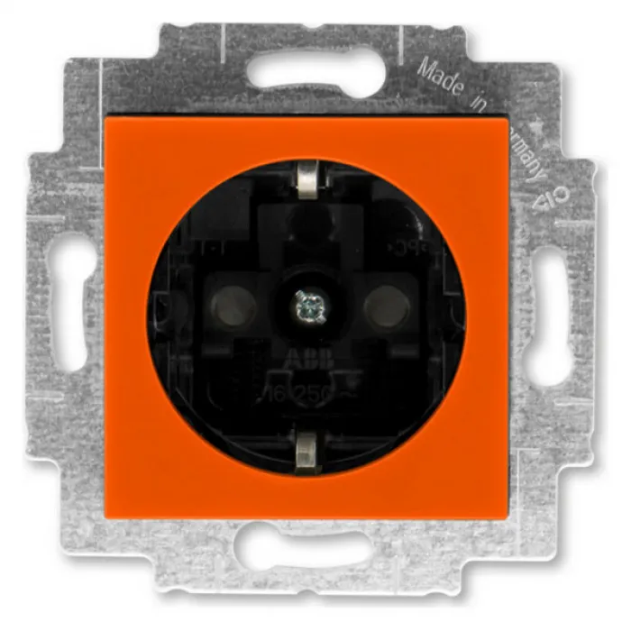 Розетка ABB LEVIT, скрытый монтаж, с заземлением, со шторками, оранжевый / дымчатый черный, 2CHH203457A6066, Нижний Новгород