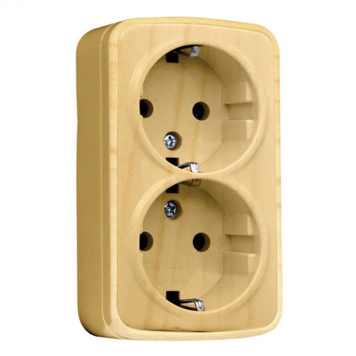Розетка двухместная EKF МИНСК, открытый монтаж, с заземлением, светлое дерево, EGR16-128-30, Нижний Новгород