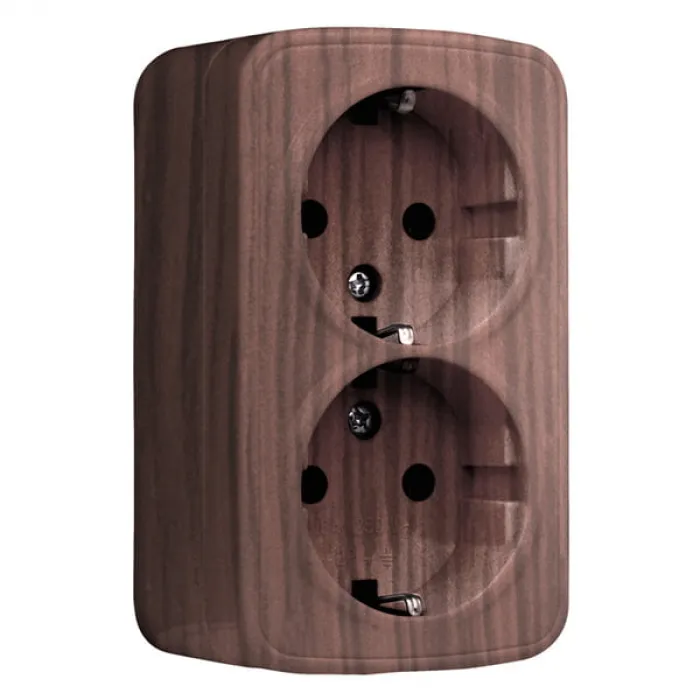 Розетка двухместная EKF МИНСК, открытый монтаж, с заземлением, тёмное дерево, EGR16-128-40, Нижний Новгород