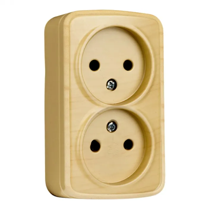Розетка двухместная EKF МИНСК, открытый монтаж, светлое дерево, EGR10-102-30, Нижний Новгород