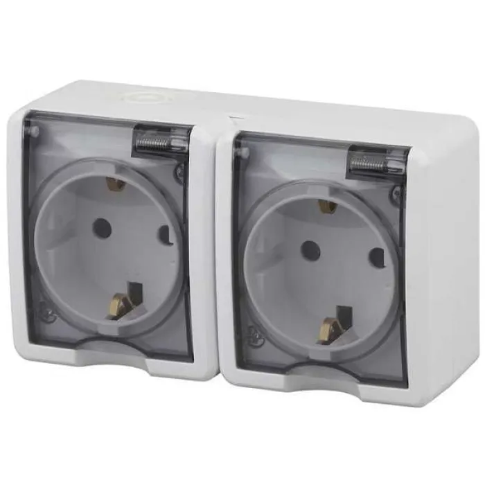Розетка 2х2P+E IP54, шторки, 16АХ-250В, ОУ, Эра Эксперт, белыйМатериал контактной группы