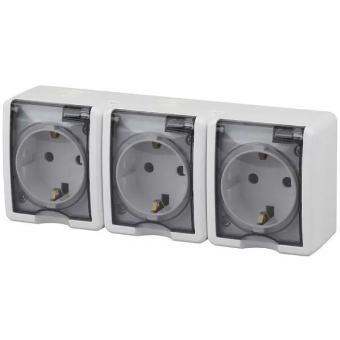 11-2405-01 ЭРА Розетка 3х2P+E IP54, 16A-250В, ОУ, Эра Эксперт, белый Материал основнойПоликарбонат