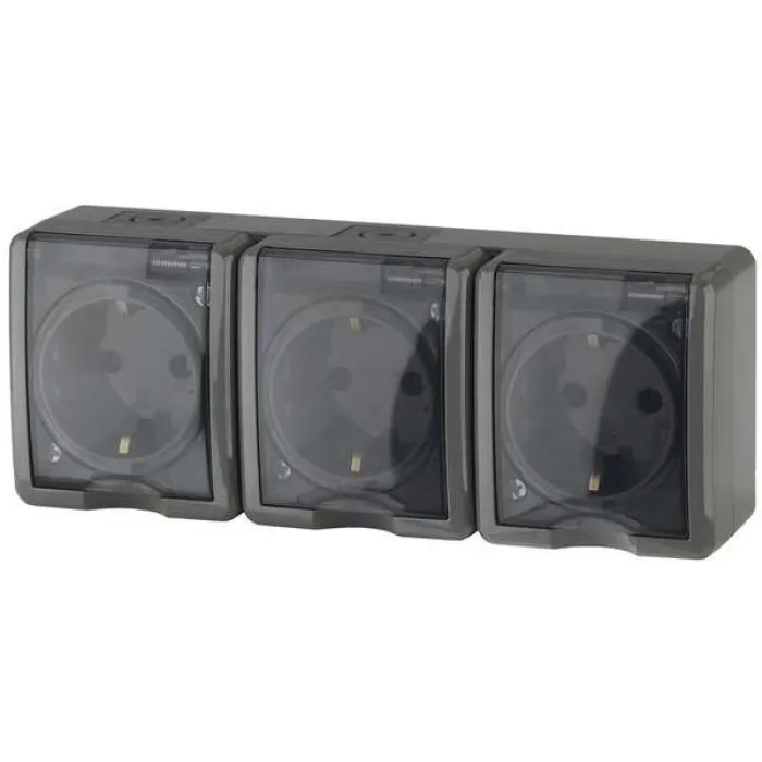 11-2405-03 ЭРА Розетка 3х2P+E IP54, 16A-250В, ОУ, Эра Эксперт, серый Вид монтажаОткрытый