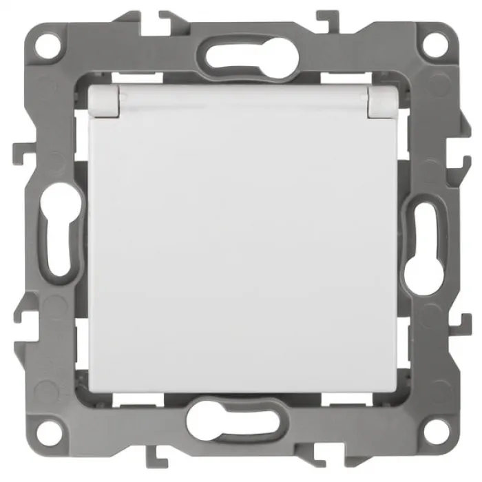 Особенностью данной розетки являются шторки с крышкой, которые защищают контакты от пыли и случайного прикосновения, обеспечивая безопасность использования.