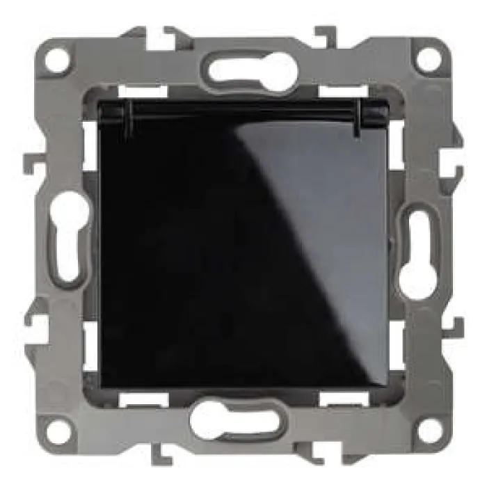 12-2103-06 ЭРА Розетка 2P+E Schuko со шторками с крышкой, 16A-250В, IP20, Эра12, чёрный, Нижний Новгород