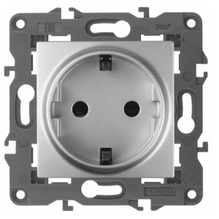 ЭРА Elegance Алюминий Розетка 2P+E Schuko со шторками 16A-250В, IP20 14-2102-03, Нижний Новгород