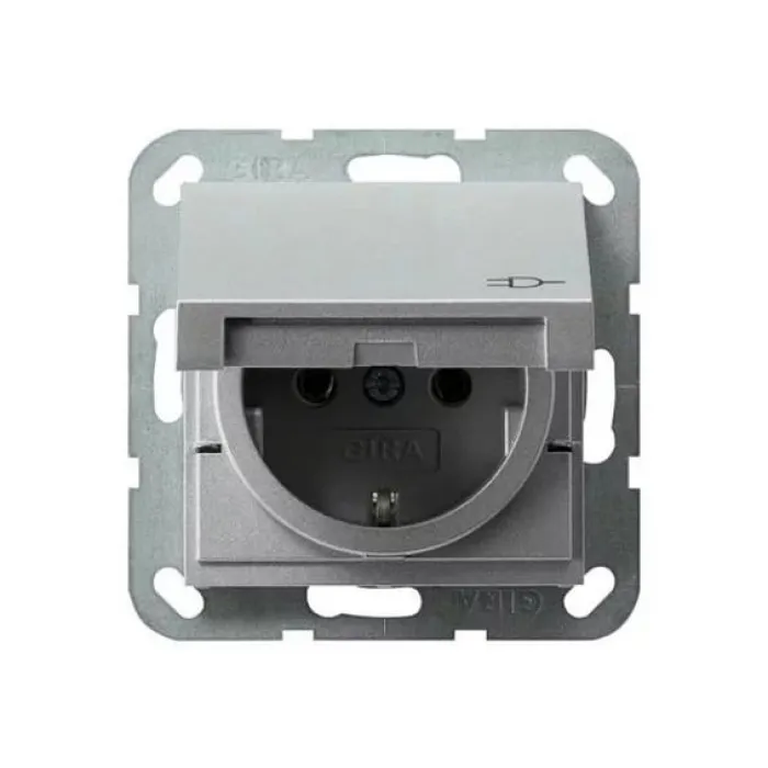 Розетка Gira SYSTEM 55, скрытый монтаж, с заземлением, с крышкой, алюминий, 045426, Нижний Новгород
