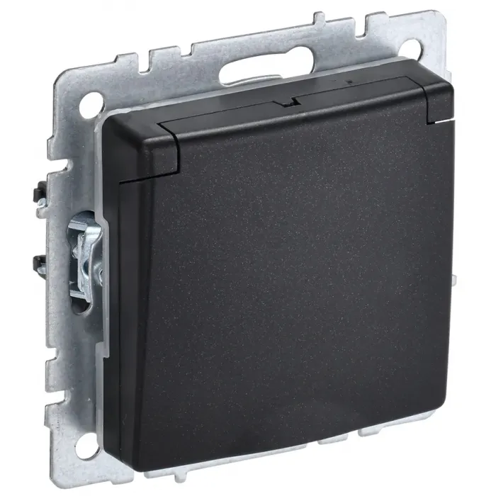 Розетка 1-местная с заземлением с защитными шторками и крышкой IEK BRITE 16А IP20 РСбш10-3-БрЧ черный, BR-R16-16-K02, Нижний Новгород