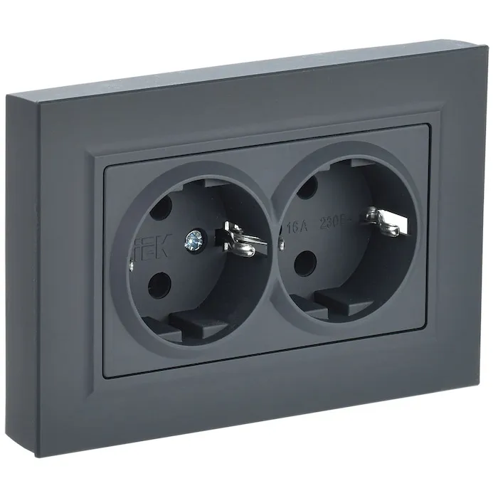 Розетка 2-местная с заземлением без защитных шторок IEK BRITE 16А в сборе РС12-3-БрГ графит, BR-R21-16-K53-F, Нижний Новгород