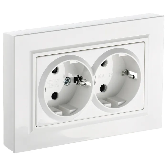 Розетка 2-местная с заземлением с защитными штороками IEK BRITE 16А в сборе РСш12-3-БрБ белый, BR-R24-16-K01-F, Нижний Новгород