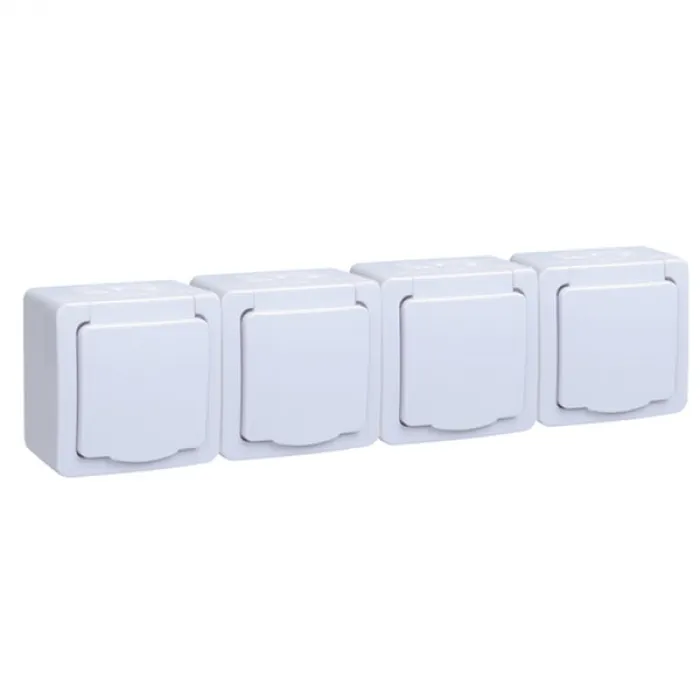 Розетка четырехместная IEK ГЕРМЕС PLUS IP54, открытый монтаж, с заземлением, белый, ERMP42-K01-16-54-EC, Нижний Новгород
