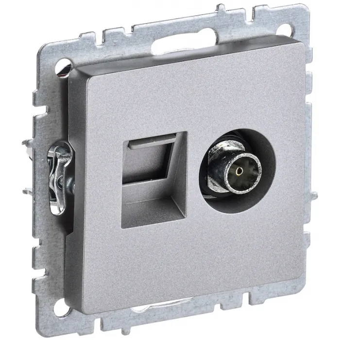 Розетка двойная TV+RJ45 IEK BRITE кат.5E РТВ/РК12-БрА алюминий, BR-AK20-1-K47, Нижний Новгород