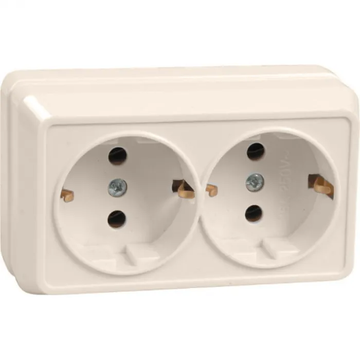 Розетка двухместная IEK ОКТАВА, открытый монтаж, с заземлением, кремовый, ERO21-K33-16-DC, Нижний Новгород