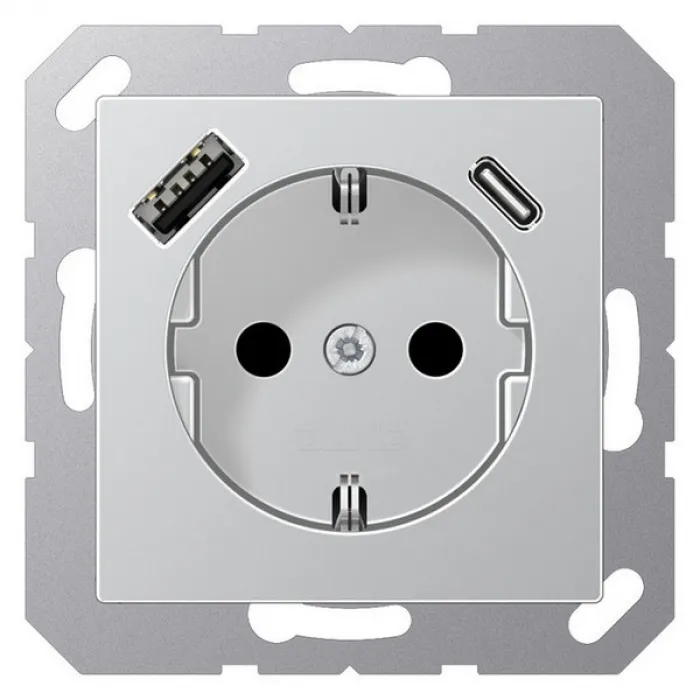 Розетка с USB Jung A 500, скрытый монтаж, с заземлением, алюминий, A1520-15CAAL, Нижний Новгород