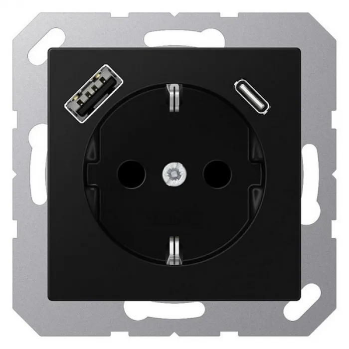 Розетка с USB Jung A 500 в черном матовом исполнении - это стильное и функциональное решение для вашего интерьера. Эта розетка обеспечивает не только удобное подключение электроприборов, но и возможность зарядки устройств через USB.Модель оснащена скрытым монтажом, что делает ее установку эстетичной и минималистичной. Заземление обеспечивает безопасность использования устройств.