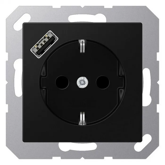 Розетка с USB Jung A 500, скрытый монтаж, с заземлением, черный матовый, A1520-18ASWM, Нижний Новгород