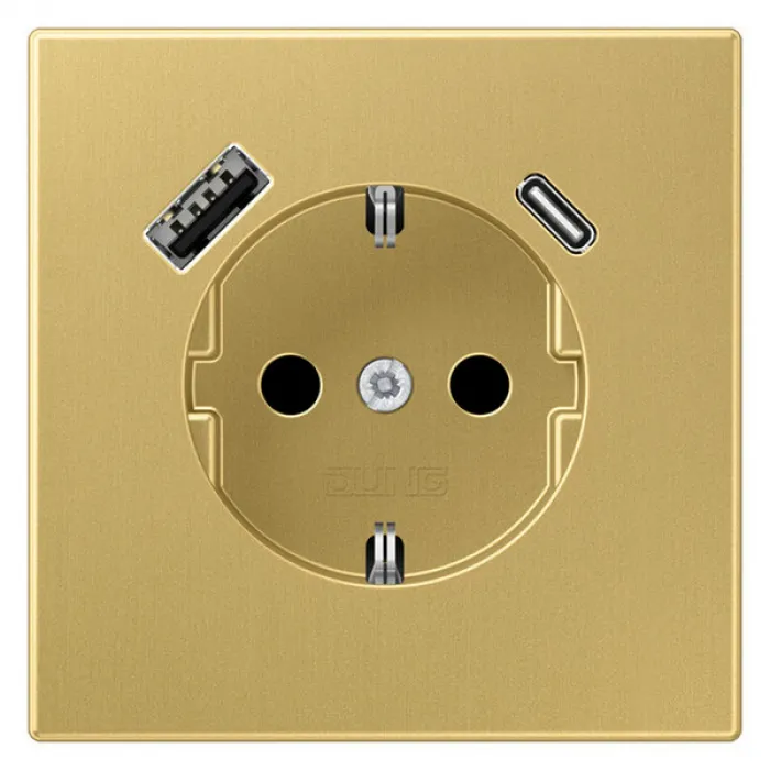 Розетка с USB Jung LS METAL, скрытый монтаж, с заземлением, латунь, ME1520-15CAC-L, Нижний Новгород