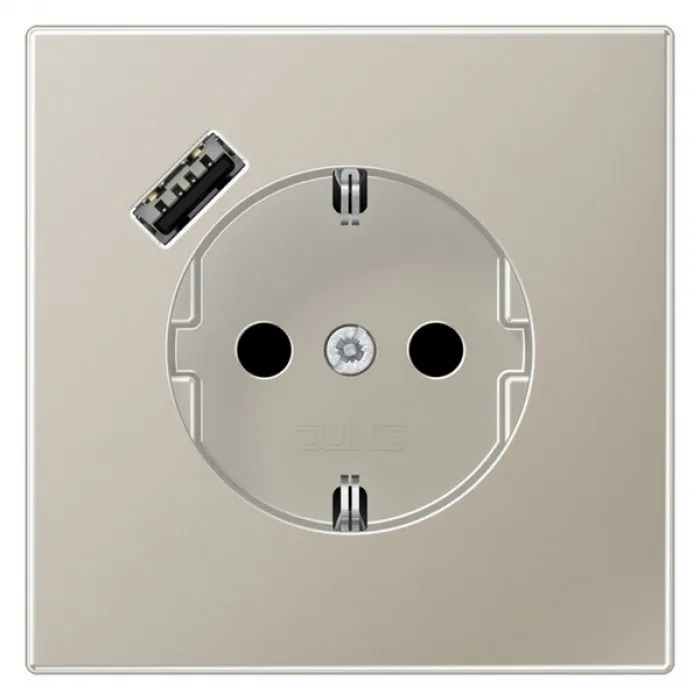 Розетка с USB Jung LS METAL, скрытый монтаж, с заземлением, нержавеющая сталь, ES1520-18A-L, Нижний Новгород
