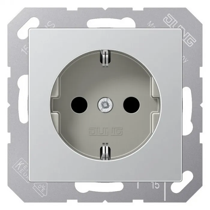 Розетка Jung А-СЕРИЯ, скрытый монтаж, с заземлением, со шторками, алюминий, A1520KIAL, Нижний Новгород