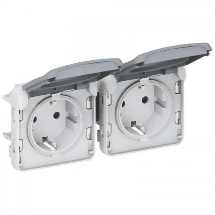 Механизм розетки 2-м СП Plexo горизонт. с защ. крышкой с заземл. IP55 сер. Leg 069576, Нижний Новгород