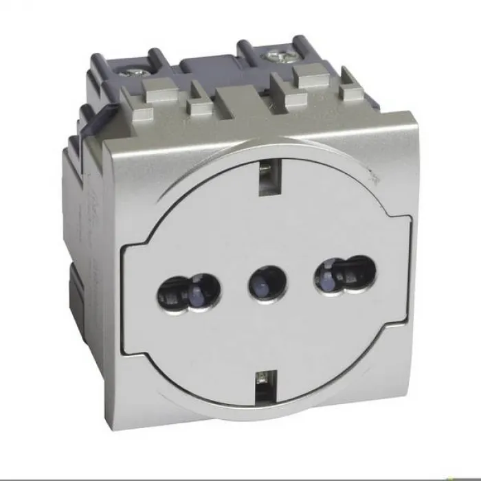 Розетка BTicino LIVING LIGHT, скрытый монтаж, с заземлением, со шторками, алюминий, NT4140/16F, Нижний Новгород