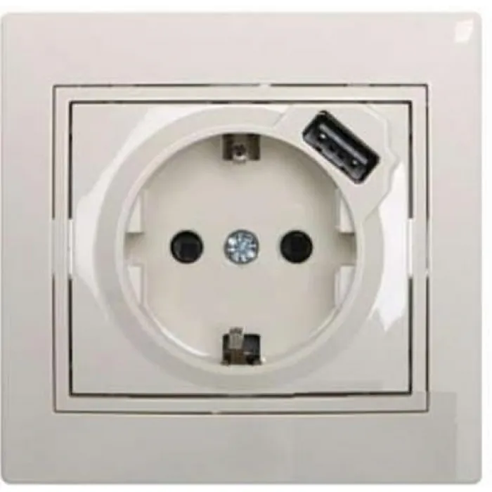 Розетка 1-м СП Мира 16А с з/к +USB крем. Lezard 701-0303-181, Нижний Новгород