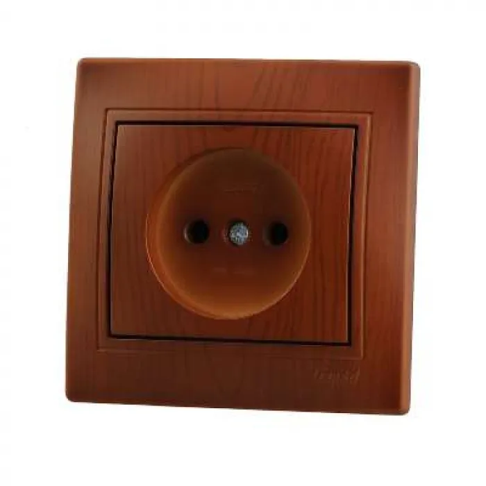 Розетка б/з (керамика). Изделия с расцветкой «под дерево» изготовлены из покрашенного «под фактуру» пластика, а не оклеены цветной пленкой. Безопасные для рук крепежные выступы с пружиной и возвратом в исходное положение. Серебряные контакты, выполнены по стандарту из сплава. Опорна плата с маркировкой, на все изделия нанесены схемы электрического соединения. Надежные соединения с помощью шайб с насечкой. Простой монтаж и демонтаж. Нержавеющий металлический каркас. Защита пальцев. Напряжение 25