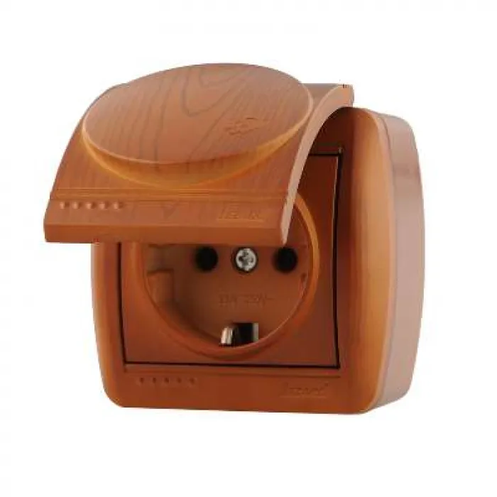 Розетка Lezard Nata 1-местная с крышкой с заземляющими контактами керамика ОП сосна 710-0800-123, Нижний Новгород