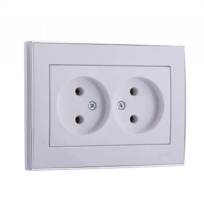 Розетка Lezard Rain 2-местная без заземляющих контактов керамика СП белая с боковой вставкой хром 703-0225-128, Нижний Новгород
