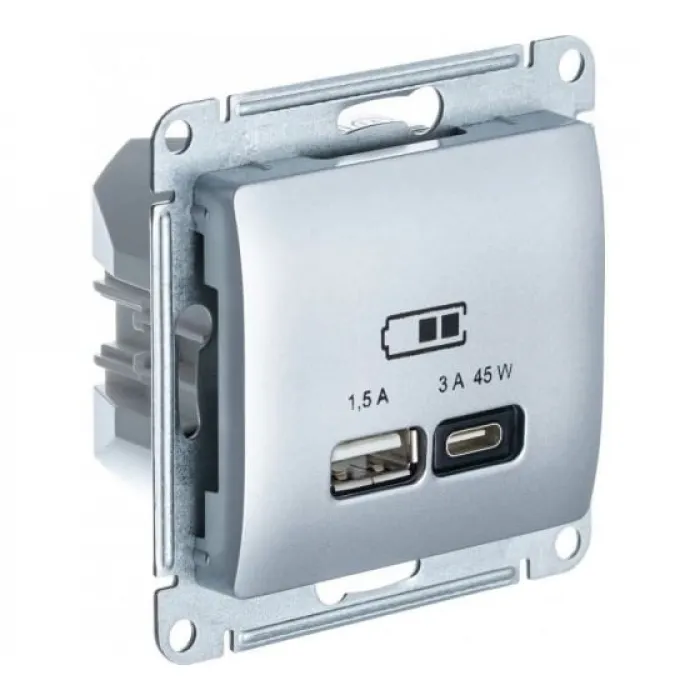 В нашем магазине Главэлектрика в Нижнем Новгороде, вы можете приобрести с доставкой по Нижнему Новгороду товар GLOSSA USB РОЗЕТКА A + тип-C 45W высокоскор.заряд. QC, PD, механизм, АЛЮМИНИЙ.