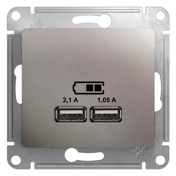Розетка 2xUSB Schneider Electric GLOSSA, скрытый монтаж, платина, GSL001233, Нижний Новгород