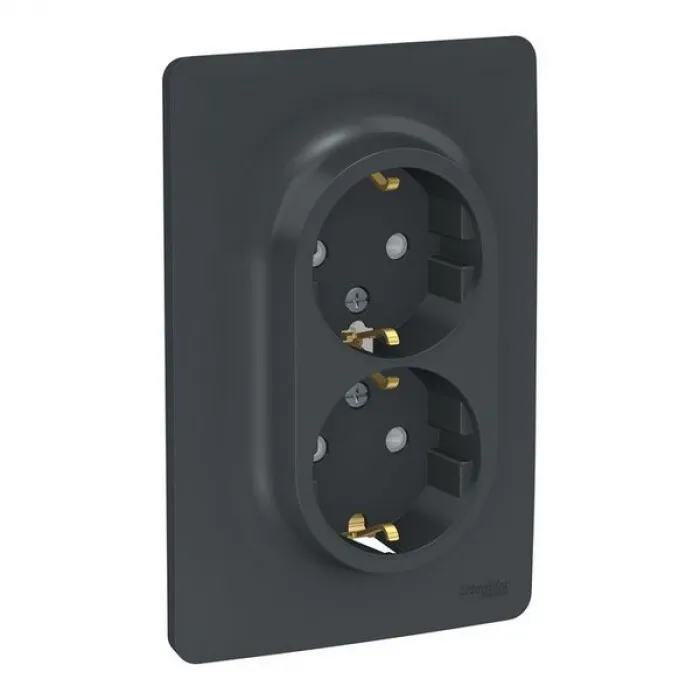 Розетка двойная со шторками с заземлением винтовые зажимы SE Unica NEW, антрацит, Нижний Новгород