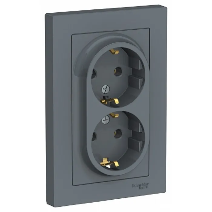 Розетка двухместная Schneider Electric ATLASDESIGN, скрытый монтаж, с заземлением, грифель, ATN000724, Нижний Новгород