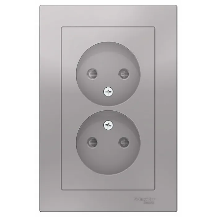 Розетка двухместная Schneider Electric ATLASDESIGN, скрытый монтаж, со шторками, алюминий, ATN000322, Нижний Новгород