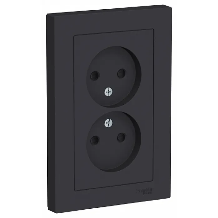 Розетка двухместная Schneider Electric ATLASDESIGN, скрытый монтаж, со шторками, карбон, ATN001022, Нижний Новгород