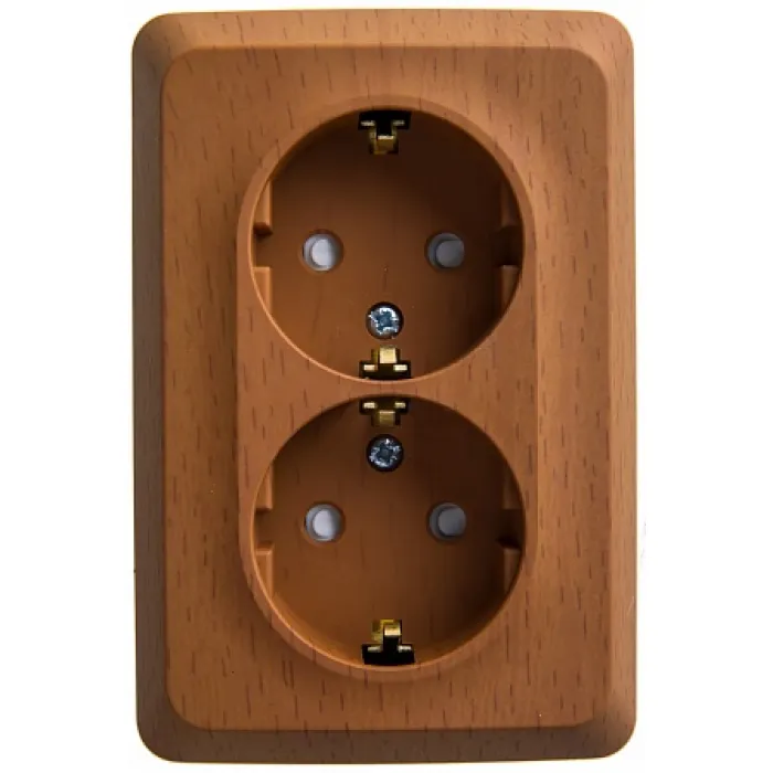 Розетка двухместная Schneider Electric ETUDE, открытый монтаж, с заземлением, со шторками, бук, PA16-108T, Нижний Новгород